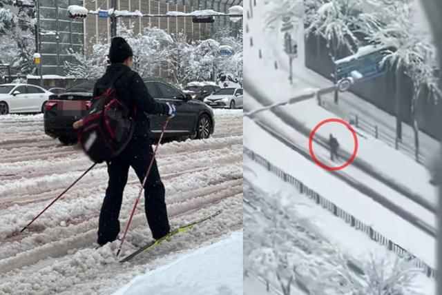 기록적인 폭설이 내린 28일 아침, 경기도 수원시 광교신도시에서 한 남성이 스키를 타고 출근하는 모습이 포착되어 화제가 되었습니다. 해당 영상은 SNS를 통해 급속도로 퍼지며 많은 이들의 관심을 받았습니다.